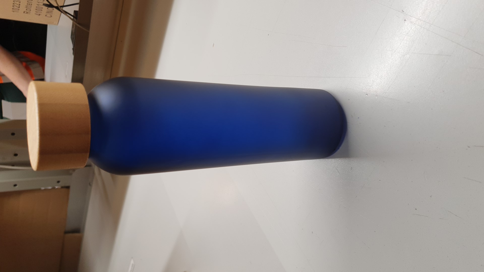 Bottiglia in vetro con finitura smerigliata e coperchio in bamboo. Senza perdite. Capacità: 500 ml. Il bamboo è un materiale naturale e può avere delle variazioni leggere di colore, dimensione e stampa.