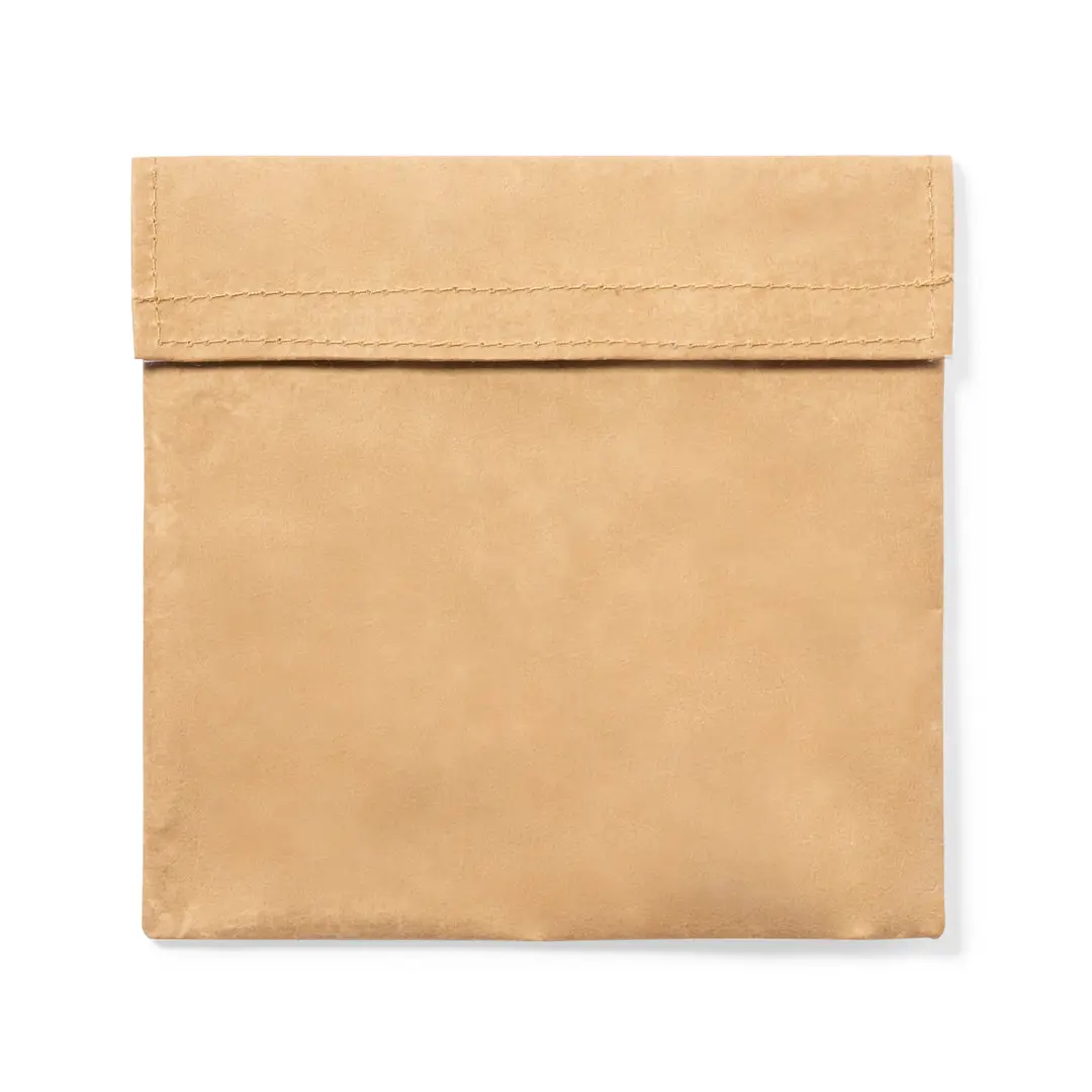 Portapanini termici della linea natura. Esterno in resistente carta riciclata laminata e interno in PEVA isotermico. Con chiusura a velcro.