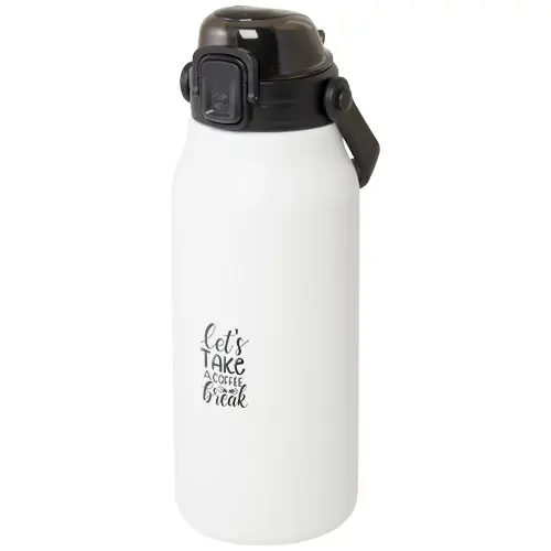 Questa grande borraccia termica in acciaio inossidabile riciclato certificato RCS è perfetta per idratarti durante il giorno con stile. L'isolamento sottovuoto in rame mantiene le bevande calde o fredde per diverse ore e, grazie al manico pieghevole, è facile da trasportare. La borraccia è ermetica ed è dotata di un facile meccanismo di apertura a pulsante. Capacità di 1600ml. Fornita in una confezione regalo in cartone riciclato.
