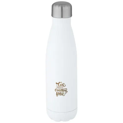 Borraccia termica con isolamento sottovuoto in acciaio inossidabile riciclato certificato RCS dal design iconico, per mantenere le bevande calde o fredde per diverse ore. Dotata di una base che si adatta alla maggior parte dei portabicchieri, questa borraccia dall'aspetto elegante è un articolo promozionale perfetto. Testato e approvato ai sensi della legislazione tedesca sulla sicurezza alimentare (LFGB) e testato per il contenuto di ftalati secondo il regolamento REACH. Capacità di 500ml. Fornita in una confezione regalo in cartone riciclato.