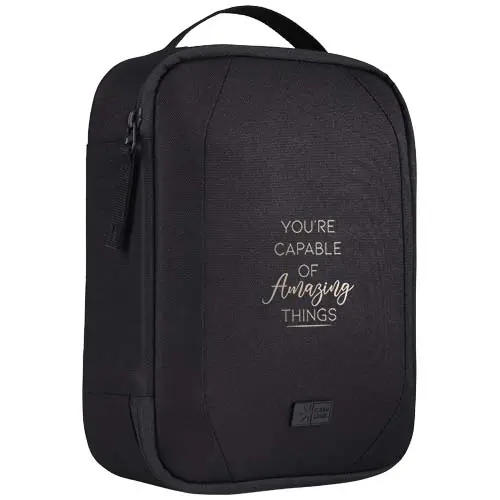 La borsa per accessori Case Logic Invigo ha spazio sufficiente per contenere per cavi, auricolari, adattatori e altri oggetti personali. È ideale da usare in una borsa più grande o da sola. Questa borsa è realizzata con un esterno in poliestere 600D riciclato al 100% e una fodera in poliestere 150D. Presenta una tasca per le penne, una tasca con zip, un'ampia tasca portaoggetti e scomparti dedicati per gli oggetti più grandi, come le cuffie.