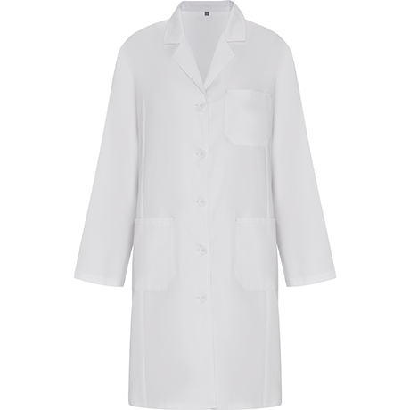 Camice di serivizio manica lunga aderente. · Collo con bavero. · Apertura centrale con 5 bottoni in tinta. · Una tasca sul petto e due laterali. · Cinturino posteriore.