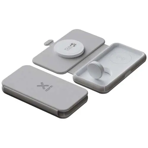 Con questo caricabatterie magnetico wireless da viaggio, compatto, pieghevole ed elegante, potete caricare contemporaneamente i vostri iPhone, Apple Watch e AirPods! Ideale per la ricarica a casa, in ufficio o durante le gite di un giorno. Dispone di 1 stazione di ricarica wireless magnetica (15 W), 1 caricatore per Apple Watch (3 W) e 1 superficie wireless Qi (3 W). Ingresso: USB-C con 30 W di potenza erogata. Inclusi un cavo di alimentazione USB-C di 1 metro e un manuale d'uso.