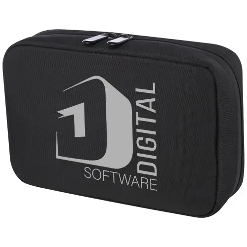 La custodia organizer Rise è una soluzione versatile e ibrida per organizzare tutti gli articoli tecnologici. Realizzata in resistente poliestere riciclato GRS 900D e fodera in velluto riciclato GRS, questa custodia rigida presenta due tasche-custodia, tasche in rete, cinghie elastiche sul fondo per i cavi e una tasca con cerniera per gli accessori aggiuntivi. Tutte le tasche garantiscono un'organizzazione ottimale e il guscio rigido protegge tutti i gadget di valore.