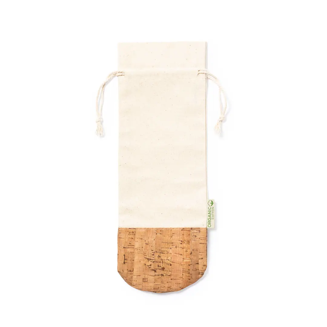 Sacchetto per bottiglie della linea natura. Realizzato in 100% cotone biologico, con chiusura a coulisse e base in sughero naturale. Ideale per bottiglie da 750 ml.