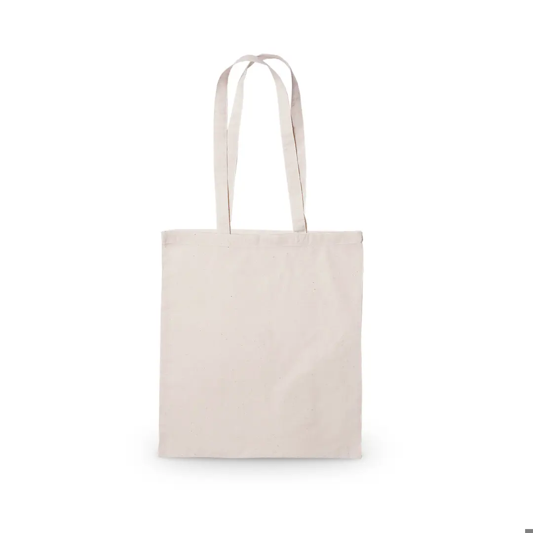 Borsa realizzata in 100% cotone, finitura naturale e peso extra di 300g/m2. Finiture cucite e manici lunghi rinforzati (70 x 2,5 cm). Resistenza fino a 10 kg di peso.