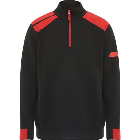 Felpa mezza zip e collo alto in colori misti. · Mezzo polsino e orlo in maglia a coste 1x1. · Copri cuciture rinforzate all'interno del collo. · Spalle e dettagli a contrasto.