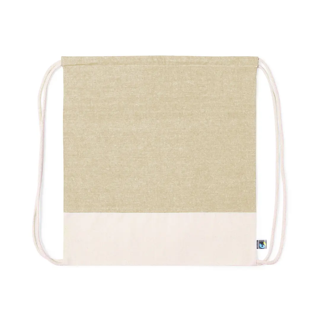 Zaino in corda della linea natura, realizzato in 100% cotone 140g/m2. Certificato Fairtrade, un sistema di commercio solidale e alternativo al commercio convenzionale che persegue lo sviluppo dei popoli e la lotta alla povertà. Finitura cucita e corde in cotone abbinate; base in tonalità naturale e parte anteriore superiore disponibile in nero e in tonalità naturale. Etichetta Fairtrade e cartellino su cartone riciclato inclusi.