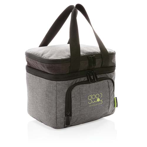Grazie per aver scelto Xd Xclusive Frigorifero Fargo RPET! Questo elegante frigorifero è perfetto per conservare il tuo cibo e le bevande fresche ovunque tu vada. Con una grande base e la capacità di ospitare fino a 8 lattine, avrai tutto il necessario per un pranzo perfetto. Il compartimento superiore con cerniera permette di conservare i panini in modo sicuro e igienico, mentre il rivestimento resistente alle perdite e facile da pulire ti farà risparmiare tempo e fatica. Non esitare a personalizzarlo con il tuo logo per creare un'originale idea pubblicitaria per la tua azienda o evento. Acquista ora questo prodotto promozionale per fare la differenza nel tuo marketing! L'elegante refrigeratore RPET è dotato di un'ampia base che consente la conservazione di alimenti piatti e contenitori e può contenere fino a 8 lattine. Metti i tuoi panini nello scomparto superiore con cerniera e sei a posto! Il dispositivo di raffreddamento è dotato di un rivestimento resistente alle perdite e facile da pulire. Esterno 100% RPET 300D / fodera 100% PEVA. Design registrato®