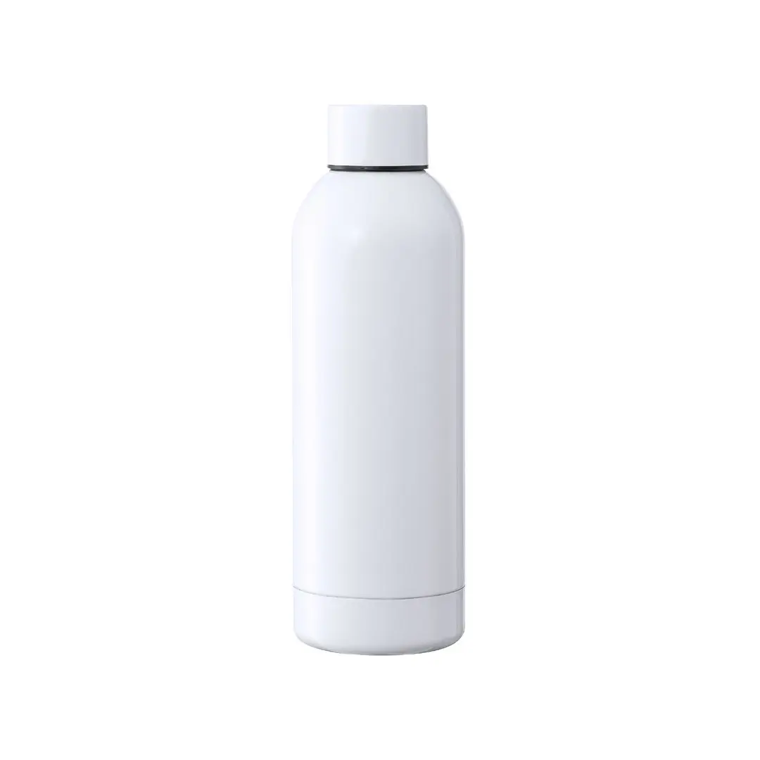Borraccia termica da 500 ml, realizzata in acciaio inox a doppia parete e appositamente progettata per la stampa in sublimazione. Finitura bianca lucida con tappo a vite coordinato senza BPA. Presentata in una scatola kraft individuale di design.