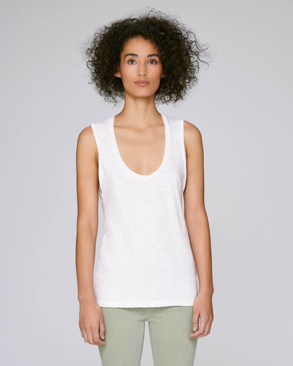 La canottiera Stella Invites Slub è la tua scelta perfetta per un look casual ma elegante. Realizzata in morbido cotone biologico filato e pettinato, questa canottiera è caratterizzata da una vestibilità media e una scollatura profonda. Con le dimensioni approssimative disponibili da XS a L, potrai trovare sempre la taglia perfetta per te. Grazie ai suoi particolari come il cordino rotondo, gli occhielli in metallo e la tasca posteriore a filetto, questa canottiera personalizzabile con il tuo logo è perfetta per ogni occasione. Scegli tra serigrafia, ricamo, vinile o trasferimento e mostra il tuo stile unico. Girovita nel tessuto principiale