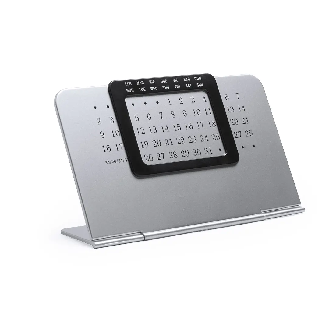 Calendario perpetuo in finitura liscia con supporto pieghevole. Ampia area disponibile per tampografia. Confezionato singolarmente in polybag.