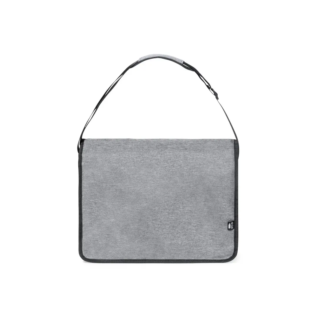 Borsa a tracolla in resistente poliestere 600D RPET. Completamente imbottita, con ampia patta frontale, chiusura in velcro e finiture nere. Scomparto principale con fodera interna, tracolla regolabile e imbottitura per le spalle. Con logo RPET sulletichetta esterna.Il materiale RPET è realizzato con plastica riciclata, promuovendo così il riutilizzo dei rifiuti plastici e contribuendo alla sostenibilità del pianeta.
