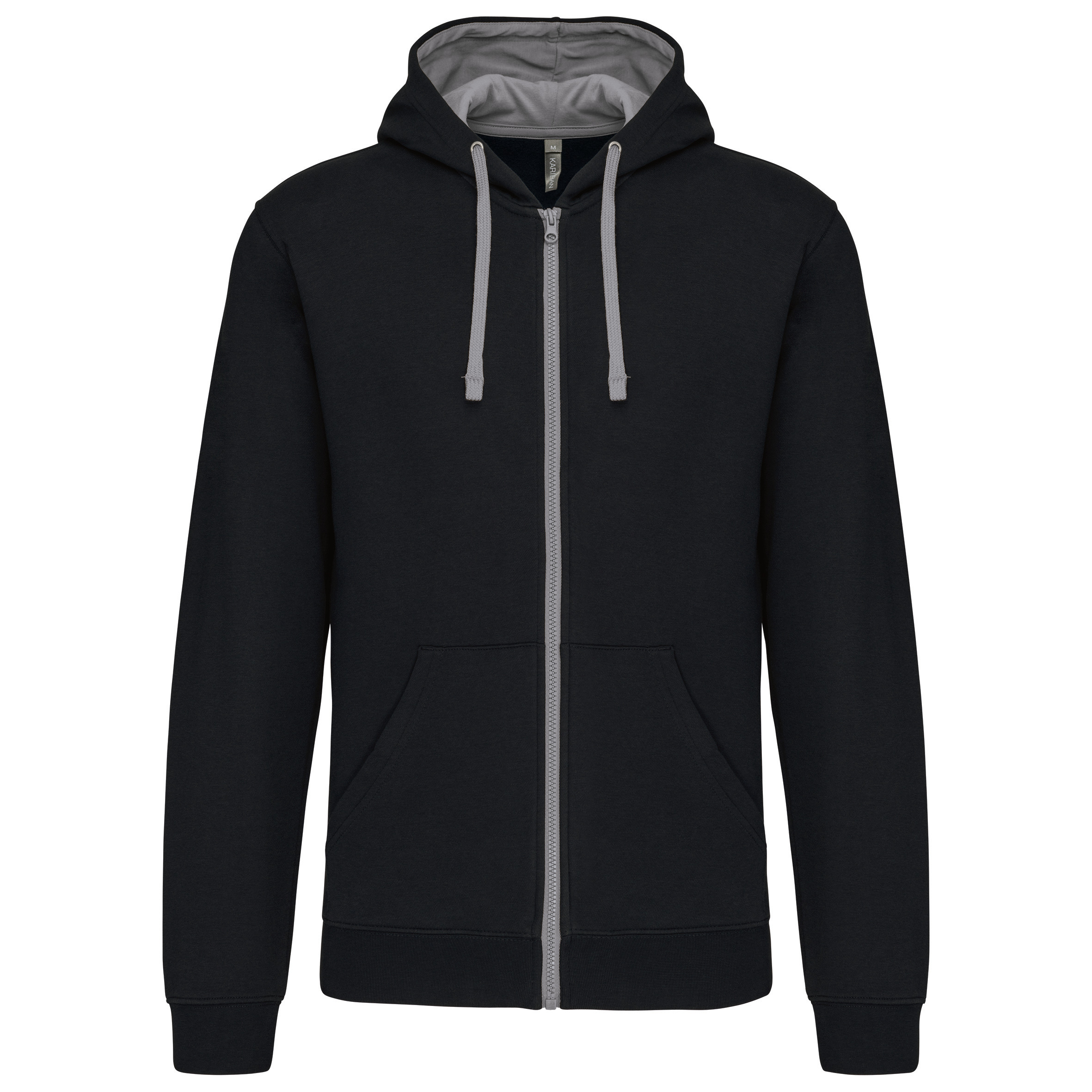 La felpa uomo con cappuccio a contrasto full zip è un capo must-have per tutti i tuoi outfit casual. Realizzata al 80% in cotone pettinato e al 20% in poliestere, è particolarmente morbida al tatto grazie alla lavorazione garzata. La tasca a marsupio con passante per auricolari ti consente di ascoltare la tua musica preferita comodamente. Il cappuccio foderato e la zip a contrasto donano un look moderno e trendy. Certificata STANDARD 100 by OEKO-TEX®N° CQ1007/7, IFTH, ti garantirà una vestibilità perfetta e sicura. Personalizzala con il tuo logo attraverso la serigrafia, il ricamo, il vinile o il trasferimento e crea un' impressione unica. Senza tempo e ultra confortevole. In felpa garzata per un comfort ottimale. Passanti per auricolari nella tasca a canguro e sul collo.
