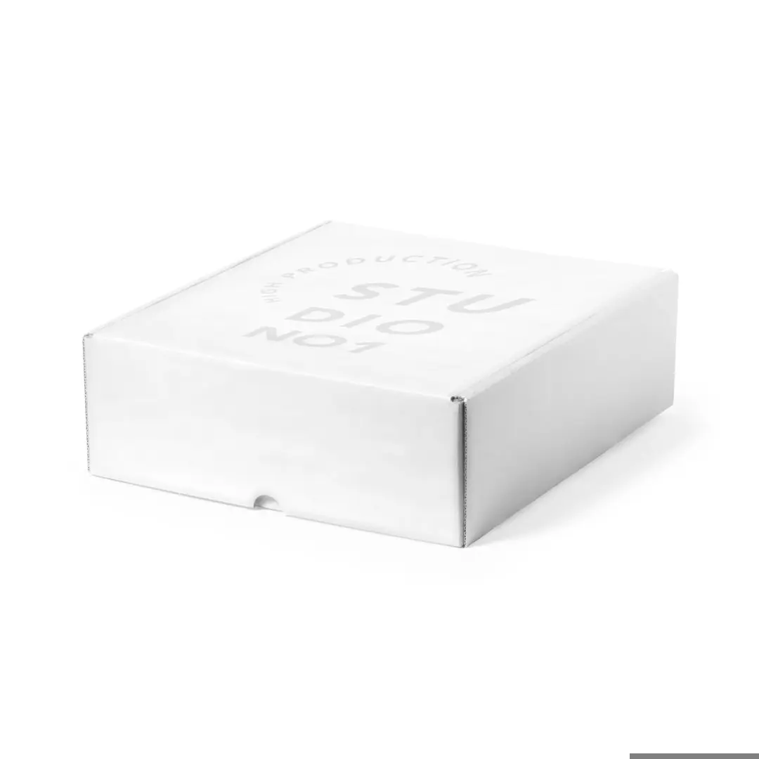 Scatola di presentazione formato XL in cartone ondulato riciclato con finitura bianca. In linea con la tendenza del mercato verso la sostenibilità del regalo integrale, offriamo soluzioni di origine riciclata per contribuire a migliorare e conservare il nostro pianeta.