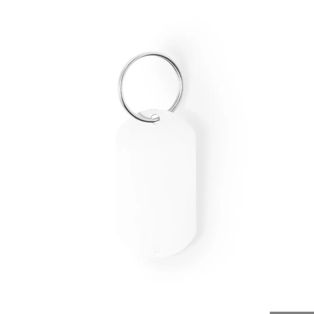 Portachiavi in alluminio riciclato con finitura argentata. Ampia superficie di stampa e logo alluminio riciclato. Con anello portachiavi in metallo abbinato.Lalluminio riciclato è un materiale con possibilità di riciclaggio quasi infinite, senza che si perdano le sue proprietà originali e consumando meno energia nel processo.