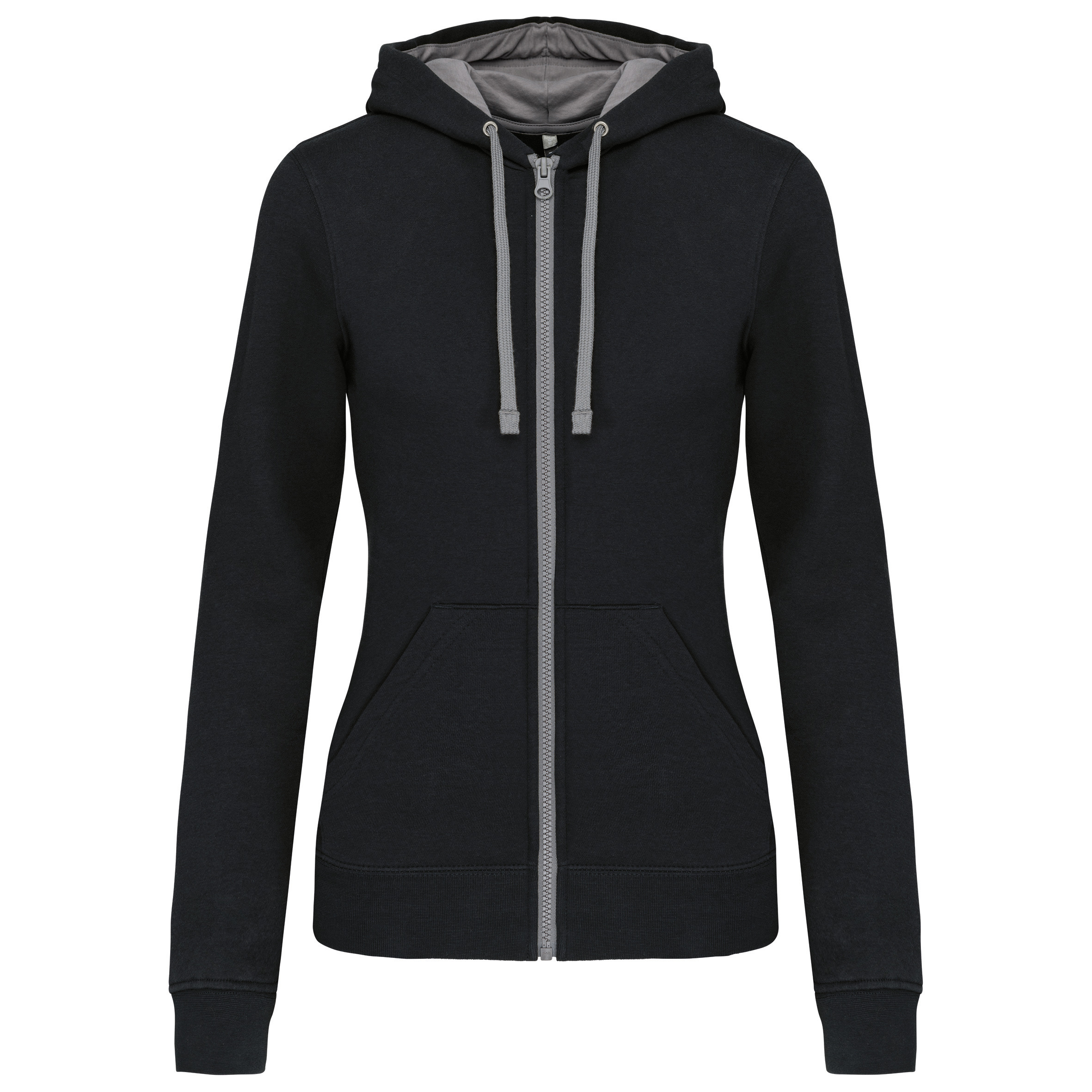 Ti presentiamo la felpa donna con cappuccio a contrasto full zip, il capo senza tempo che ti accompagnerà ovunque tu vada. Realizzata in morbido cotone pettinato e poliestere garzato, questa felpa ti offrirà un comfort ottimale e un'ottima vestibilità. La tasca a marsupio con passanti per auricolari ti permetterà di portare con te la musica ovunque tu vada. Il cappuccio a contrasto con coulisse e la zip sui toni del capo conferiscono un tocco di stile personalizzato. Certificata STANDARD 100 by OEKO-TEX®, ogni dettaglio è stato curato per garantirti la massima qualità. Scegli la felpa donna con cappuccio a contrasto full zip per un look casual sempre alla moda. Senza tempo e ultra confortevole. In felpa garzata per un comfort ottimale. Passanti per auricolari nella tasca a canguro e sul collo.