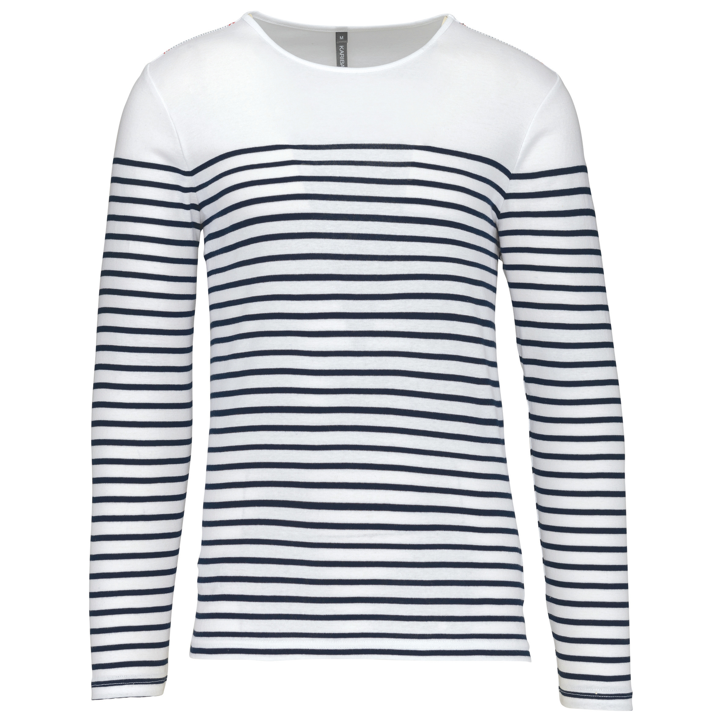 La maglia uomo alla marinara Breton manica lunga è un capo intramontabile della collezione Sailing. La sua taglio moderno garantisce un look chic e casual. Realizzata in tessuto 100% cotone a costine 1x1 e certificata STANDARD 100 by OEKO-TEX®N° CQ1007/7, IFTH, ti assicura la massima qualità e durata. Il punto fantasia sulla spalla e gli spacchetti laterali rendono la maglia ancora più originale. Personalizzabile con il tuo logo tramite serigrafia, ricamo, vinile o trasferimento, diventa il capo ideale per un'acquistare con impressione. Disponibile nelle taglie S, M, L, XL, XXL e 3XL. Maglia alla marinara classica e intramontabile. Taglio moderno per un look chic e casual. Collezione Sailing. Tessuto 100% cotone.