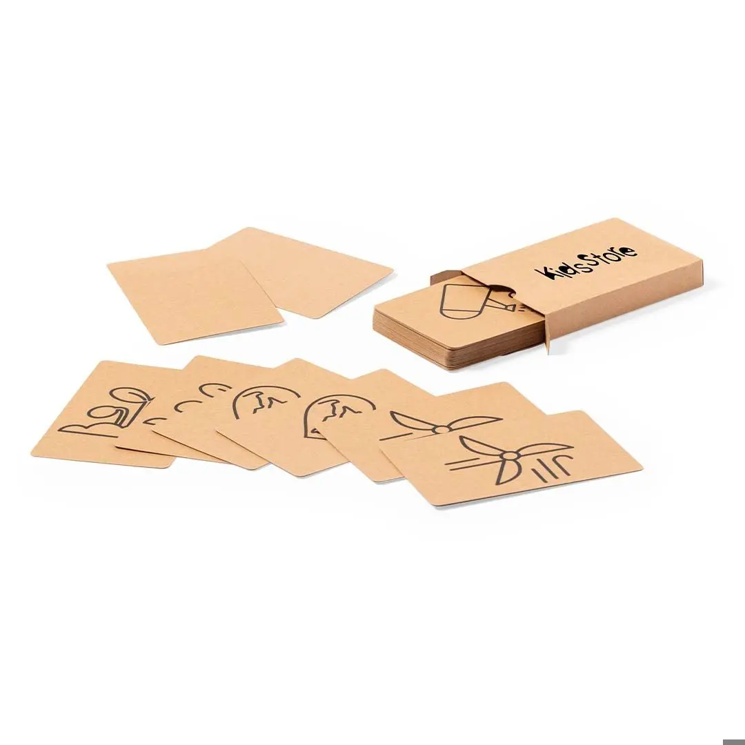 Gioco di sensibilizzazione ecologica in cartone riciclato. Set da 36 carte in scatola individuale di cartone riciclato.