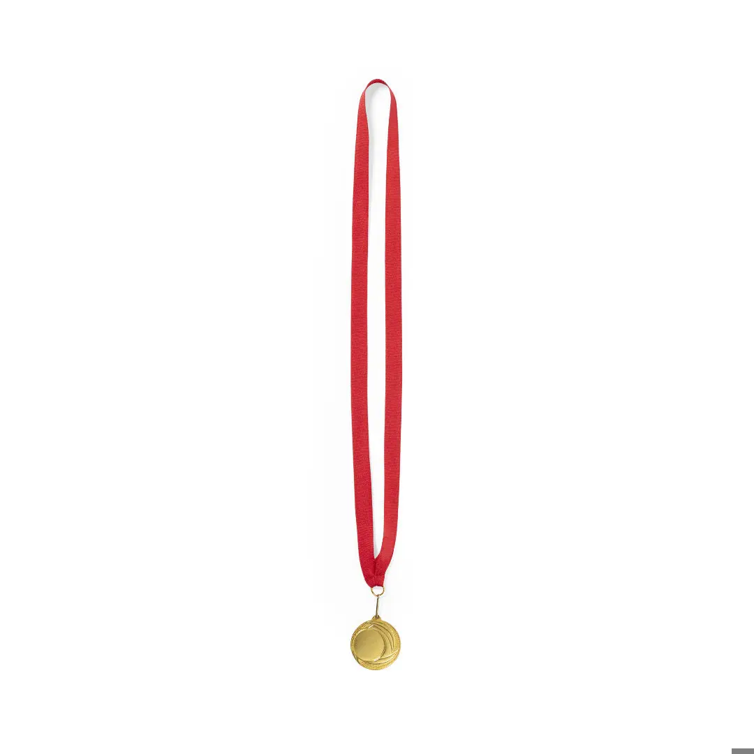 La medaglia Konial è un'eccellente scelta per gli sportivi più competitivi! Realizzata in metallo con finitura dorata in rilievo e dotata di un nastro in poliestere rosso e di un moschettone metallico abbinato, è perfetta per tutte le competizioni. Inoltre, è possibile personalizzarla con il tuo logo grazie alla marcatura al laser. Questa medaglia è un'idea originale per promuovere la tua azienda o per creare eventi pubblicitari: un ottimo strumento di marketing!