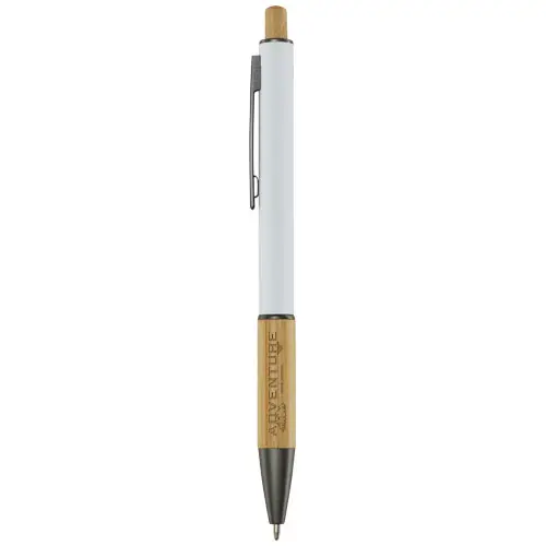 La penna a sfera Darius è realizzata in alluminio riciclato, che richiede meno energia nella produzione rispetto all'alluminio proveniente da materie prime. Riduce inoltre la quantità di rifiuti nelle discariche e aiuta a conservare le risorse naturali con l'obiettivo di ridurre le emissioni di gas serra. Il pulsante e la parte inferiore del fusto sono in bambù. Colore dell'inchiostro: Blu. Capacità di scrittura: 800 metri. Dimensione del pennino: 1,00 mm.