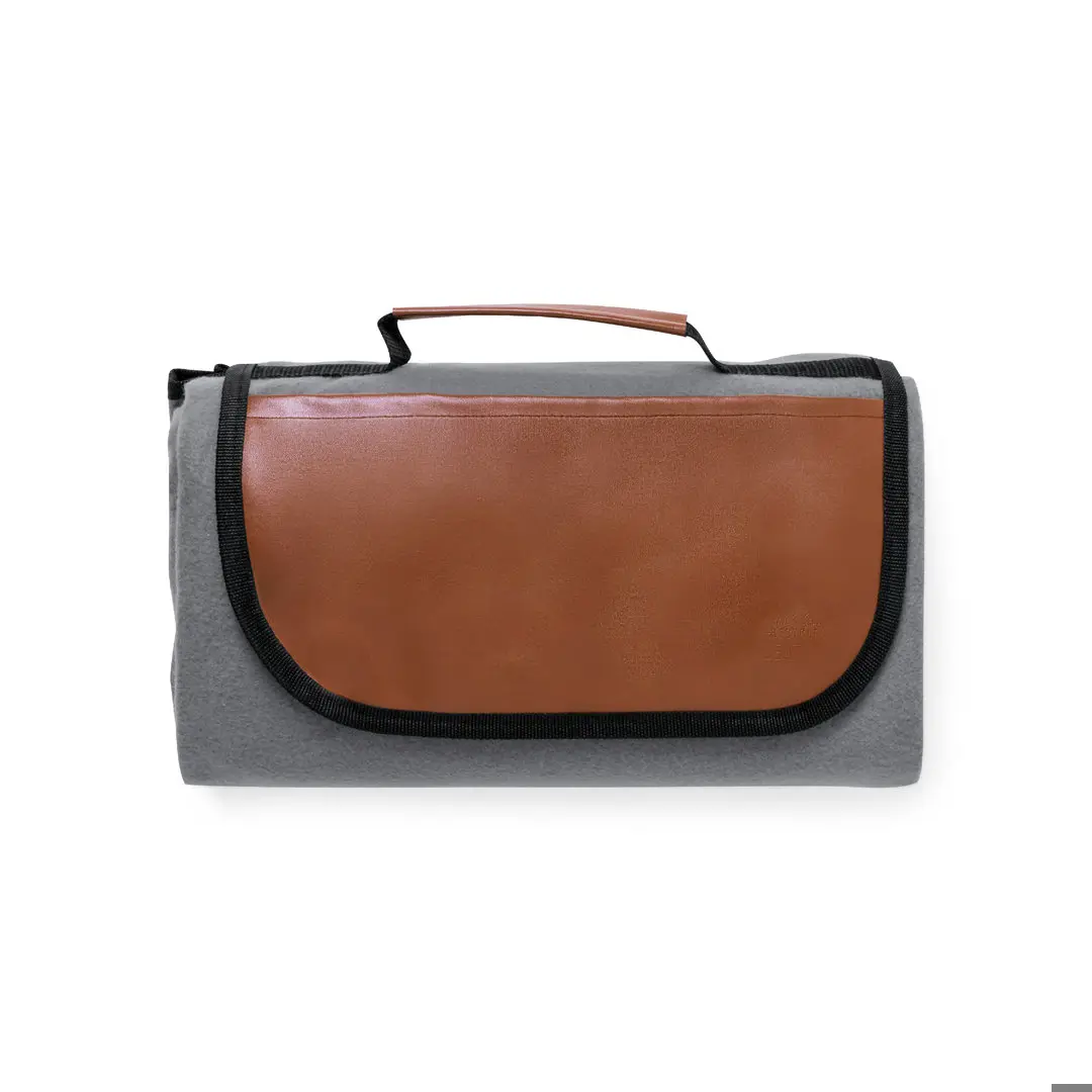 Coperta da picnic premium realizzata in resistente poliestere RPET da 160 g/m2 con finitura grigia. Pieghevole e con chiusura a velcro; patta e manico in pelle riciclata con profili rinforzati. Di dimensioni 120x150 cm, con base isolante in PEVA e lato di seduta piacevole al tatto. Facile da ripiegare e di dimensioni compatte, con distintivo in pelle riciclata sulla patta. .Il materiale RPET è ottenuto da plastica riciclata, promuovendo così il riutilizzo dei rifiuti plastici e contribuendo alla sostenibilità del pianeta.La pelle riciclata recupera le fibre scartate nel processo di produzione della pelle, riducendo al minimo gli scarti di materiale e contribuendo a ridurre limpatto ambientale, pur mantenendo le sue proprietà originali.