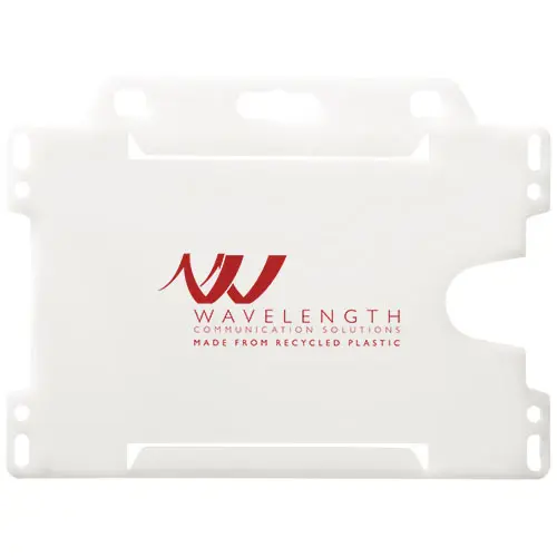 Porta badge in formato orizzontale realizzato in plastica riciclata. Ideale per mostre, luoghi di lavoro ed eventi di networking. Adatto per pass con dimensioni standard dei biglietti da visita e delle carte di credito. A causa della natura della plastica riciclata, le tonalità dei colori possono variare leggermente e possono essere presenti macchioline di colore. Prodotto nel Regno Unito.