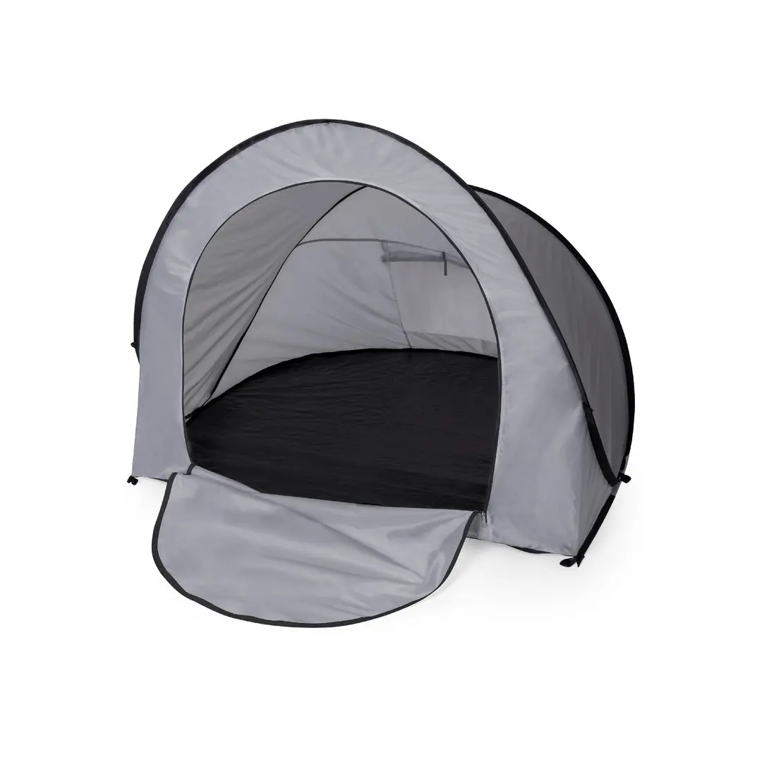 Tenda automontante, basta estrarla dalla copertura e si dispiega automaticamente. Realizzata in resistente poliestere RPET, con struttura in metallo e dettagli neri. Ampia porta dingresso, con chiusura a zip e doppia maniglia interna ed esterna. Finestra sul retro con zanzariera, chiusura a velcro e tenda avvolgibile con cordino e cinghia di fissaggio. Ideale per 2 persone e facile da piegare. Confezionata in una custodia coordinata, con etichetta RPET allesterno.Il materiale RPET è realizzato con plastica riciclata per incoraggiare il riutilizzo dei rifiuti plastici e contribuire alla sostenibilità del pianeta.