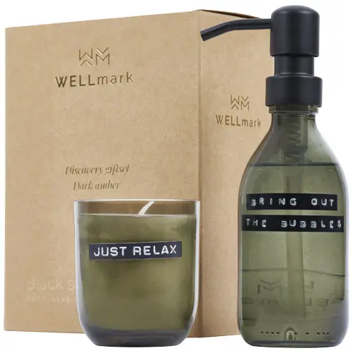 Questo delizioso set è composto da un dispenser di sapone per le mani e una candela profumata al delizioso profumo di ambra scura. Il sapone per le mani viene fornito in un contenitore di vetro da 250 ml con dispenser ed è biodegradabile e privo di parabeni, olio di palma, SLS e Sles. La candela profumata (150 g) è realizzata in cera di colza e brucia completamente rendendo il barattolo riutilizzabile. Prodotto nei Paesi Bassi.