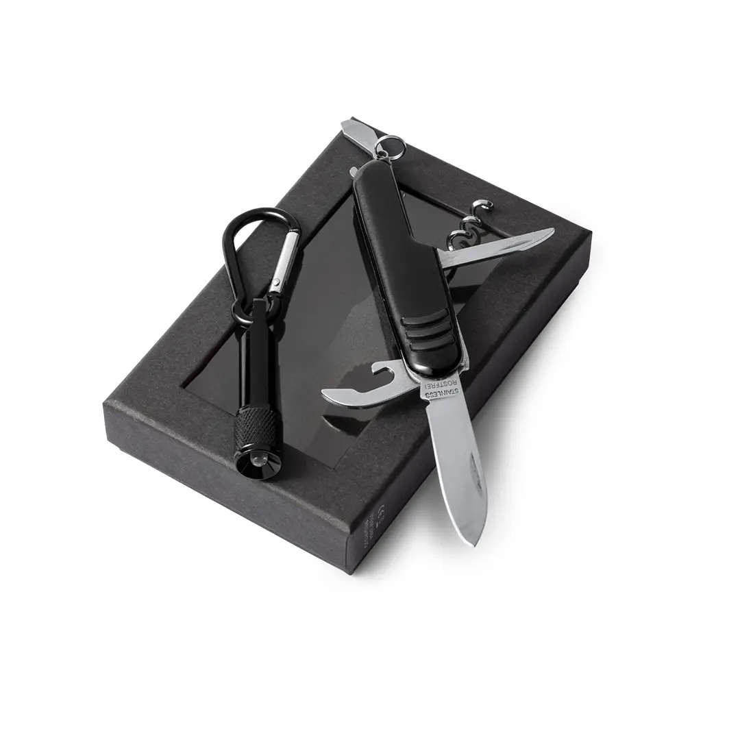 Lo sveglio Sufli è il coltellino multifunzione perfetto per ogni avventura outdoor. Composto di allergia leggero e robusto alluminio e acciaio inox, questo coltellino è dotato di 7 funzioni diverse e una torcia moschettone utile per qualsiasi esigenza. Incluso nelle batterie a bottone e confezionato singolarmente in una scatola trasparente con morbida schiuma all'interno, il Sufli sarà un accompagnamento affidabile per ogni attività escursionistica. Aggiungi il tuo logo personalizzato per un regalo promozionale unico, perfetto per eventi aziendali e merchandising. Prepara al meglio il tuo tempo libero con lo sveglio Sufli!