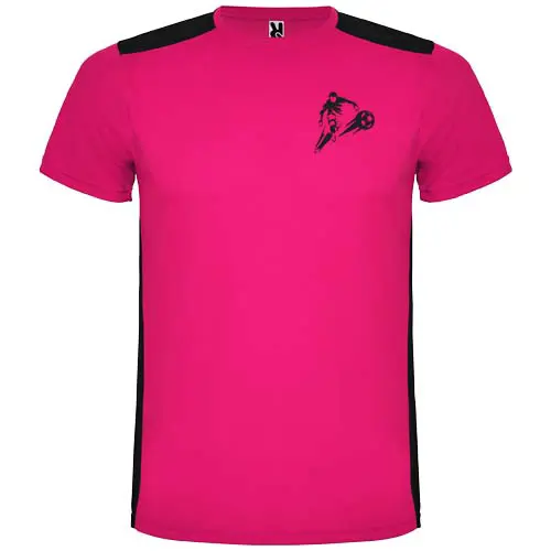 Tessuto tecnico traspirante che si asciuga rapidamente. Girocollo. Combinazione di due tessuti in poliestere sul retro e sulle spalle. Tessuto a occhio di pernice sul davanti e tessuto mesh 3D traspirante sul retro. Tessuto realizzato per assorbire l'umidità. Cucitura decorativa a zigzag con impuntura sui lati e sulle spalle. Parte posteriore leggermente più lunga. Etichetta rimovibile.