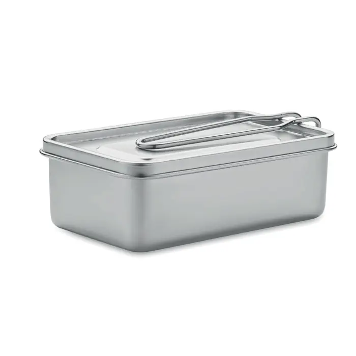 Porta pranzo in acciaio inox con manico di chiusura rimovibile. Capacità: 750 ml.