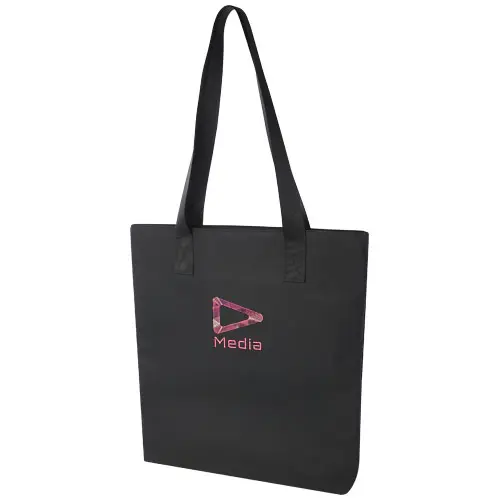 La tote bag Turner è progettata con materiali altamente resistenti e sostenibili. L'esterno è realizzato al 51% in plastica di poliuretano riciclata e certificata GRS, mentre la fodera è realizzata al 100% in PET riciclato certificato GRS. La tote bag presenta uno scomparto dedicato per portatile o tablet e una tasca con cerniera per contenere gli oggetti più piccoli. Questa tote bag è resistente e, grazie al design classico e ai materiali robusti, diventerà un must-have.