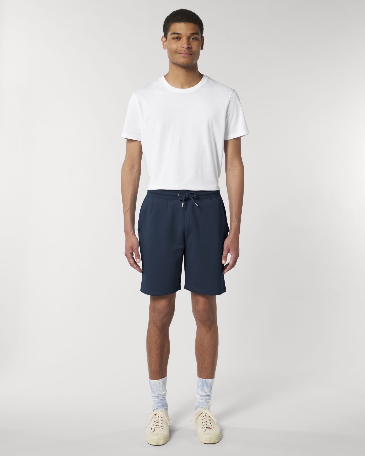 I Trainer sono shorts jogging unisex realizzati al 85% in cotone biologico filato e pettinato e al 15% in poliestere riciclato. La vestibilità è media e sono caratterizzati da un girovita a costine 1x1 con cordoncini tubolari tono su tono con estremità in metallo, occhielli in metallo, tasche foderate in single jersey e una tasca applicata sul retro. Il design è completato da doppie impunture sul girovita, l'apertura delle tasche e le cuciture del cavallo e da un orlo inferiore con doppia impuntura larga. Questi shorts jogging sono una scelta ecologica ideale per il tuo abbigliamento personalizzato con logo. Disponibile in diverse taglie per uomo e donna, i Trainer possono essere personalizzati tramite serigrafia, ricamo, vinile o trasferimento. Girovita a costine 1x1