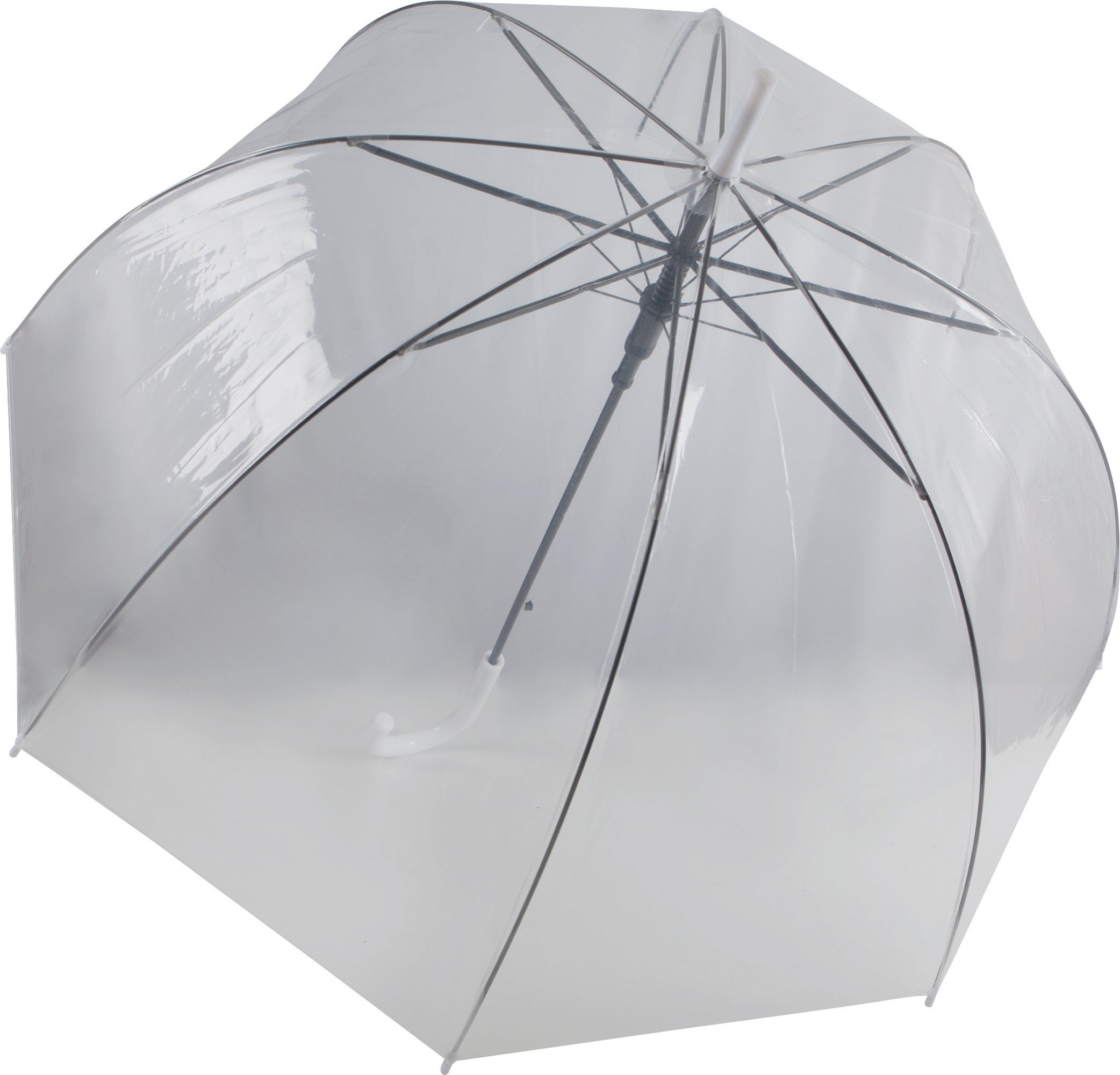 L'ombrello trasparente in POE è la scelta vincente per i tuoi regali e accessori promozionali! Grazie al suo design accattivante e alla sua apertura a scatto pratica e veloce, lo stile del tuo brand sarà sotto gli occhi di tutti! L'asta in metallo spessore 8 mm, le stecche nere e le puntine in polipropilene rendono questo ombrello resistente e durevole, mentre il manico arrotondato lo rende comodo da impugnare. Aggiungi il tuo logo personalizzato e fai la differenza agli eventi aziendali e pubblicitari. Affidati all'ombrello trasparente in POE per il merchandising e il marketing della tua azienda! Apertura a scatto pratica a veloce. Design trasparente accattivante. Manico arrotondato per impugnarlo meglio.