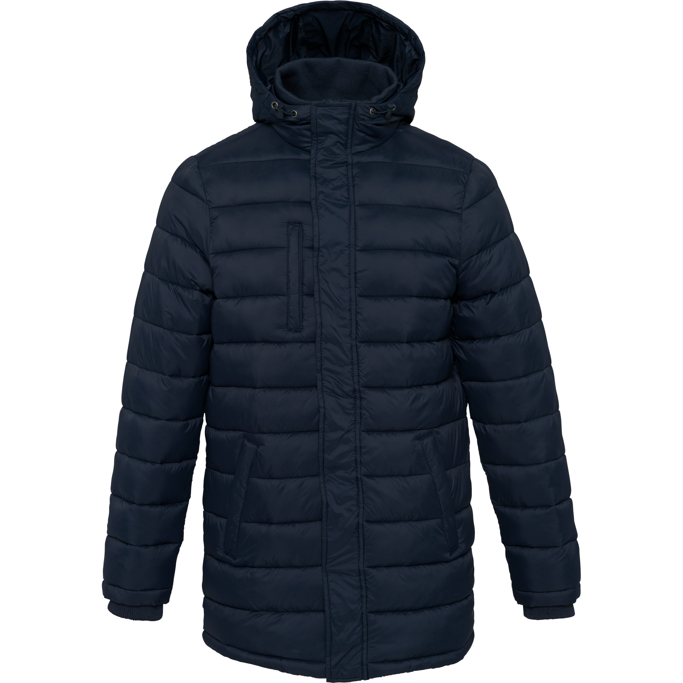 Il parka piumino da uomo è la scelta perfetta per uno stile casual e sportivo. La sua imbottitura interna in poliestere lo rende ultraleggero ma allo stesso tempo caldo e confortevole. Ha 2 tasche sul davanti e una sul petto con zip, che lo rendono un capo molto pratico. Il cappuccio con interno contrastante, i polsini a costine per impedire l'ingresso del freddo e la zip con doppio cursore contribuiscono a renderlo un'ottima scelta. Personalizzalo con il tuo logo per un effetto ancora più impressionante e acquistalo ora! Parka lungo dal look sportswear e casual. Polsini a costine per impedire l'ingresso del freddo nelle maniche. Calore, comfort e leggerezza extra.