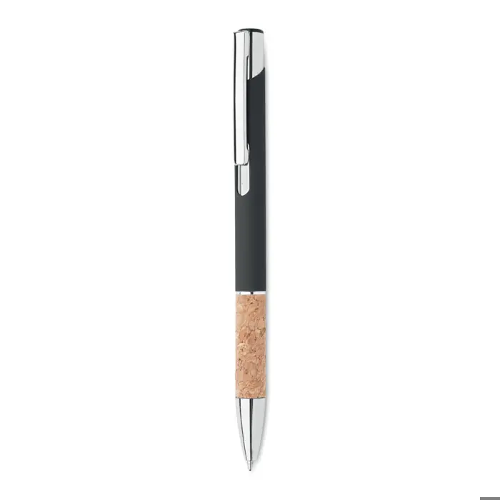 Penna a pulsante in alluminio con impugnatura in sughero. Inchiostro blu.