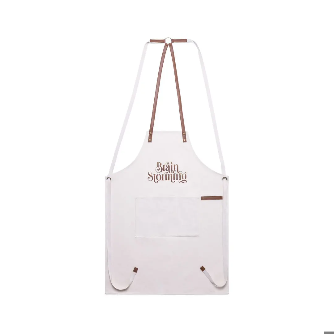 Grembiule di alta qualità in resistente tela di cotone 100%, 340g/m2, con cuciture rinforzate. Tagliato sotto il ginocchio, con resistenti cinturini in similpelle e tripla regolazione: collo, schiena e vita. Con tasca frontale, accessorio in similpelle e rivetti in metallo per il rinforzo.