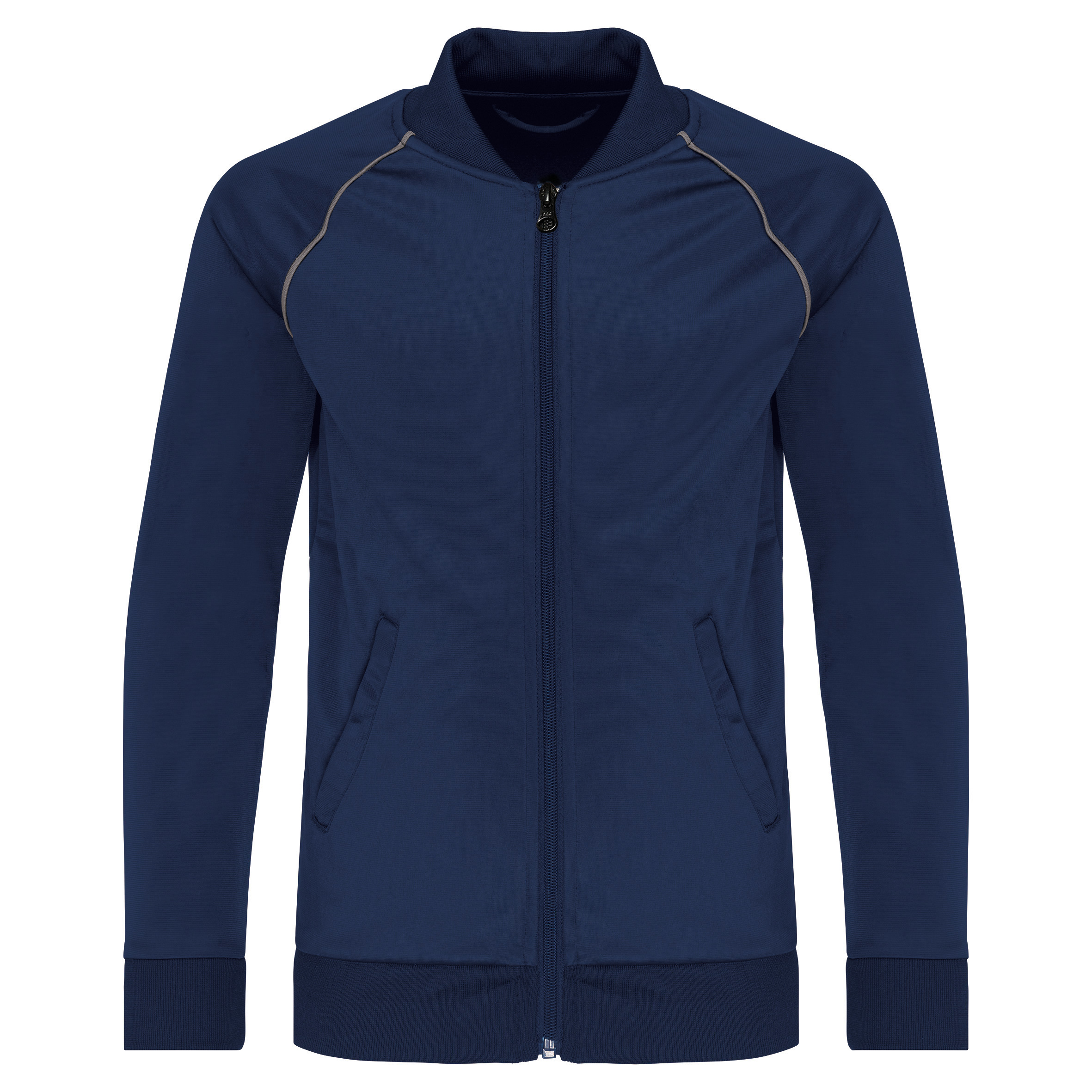 Questa giacca tuta per bambini con zip e colletto rigato è perfetta per i giorni più freddi! Realizzata al 100% in poliestere lavorato a maglia, offre un taglio dritto e maniche raglan con colletto a contrasto. Inoltre, ha 2 tasche laterali con zip e un'etichetta con il marchio facilmente personalizzabile. Disponibile in diverse taglie per bambini, è un'ottima opzione per personalizzare con il tuo logo. Che aspetti? Acquista subito e lascia un'ottima impressione!